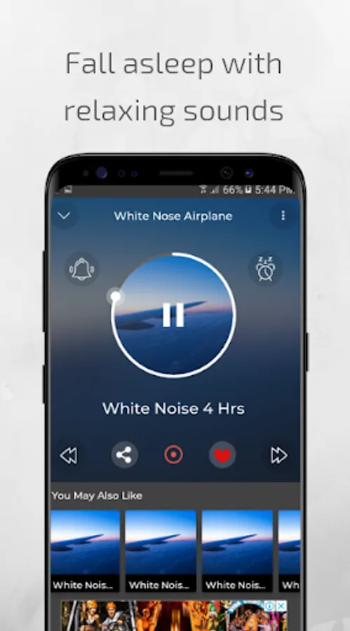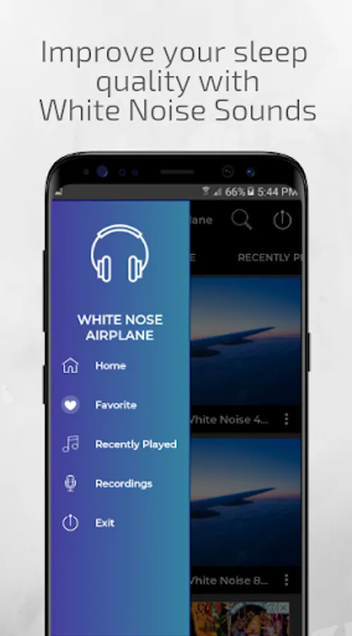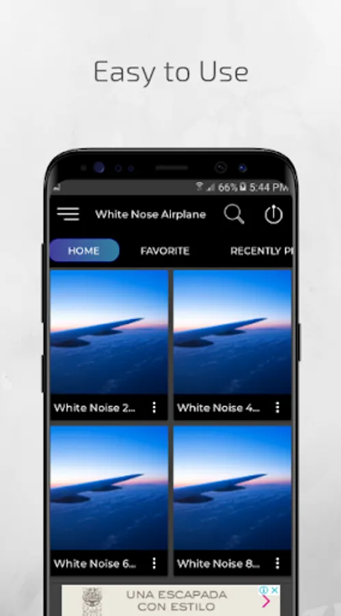 To use the app White Noise Airplane without an internet connection, first play the audio, and when it is active, click on the record button and you can stop it for a minute. Doing this procedure you will already have the offline audio for when you want to listen to it