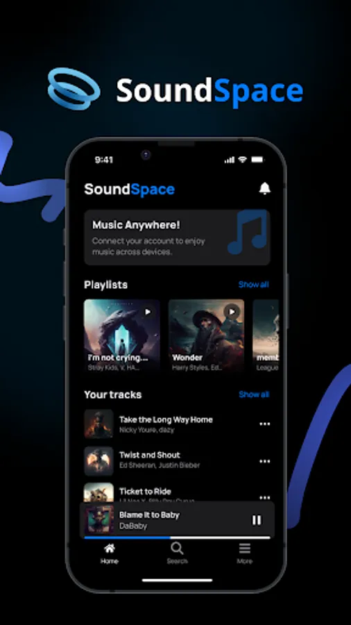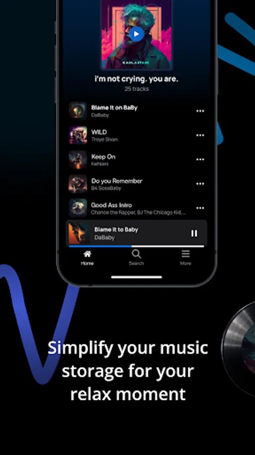 You can sync your own music via Google Drive, and Dropbox storage. You can also listen to any website's media, add any track to your library and listen to them anywhere!