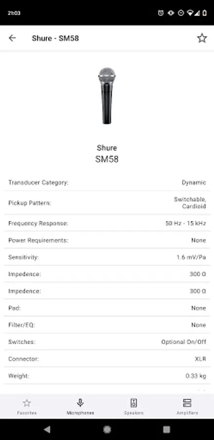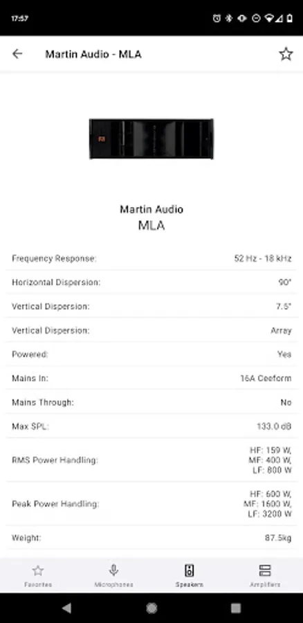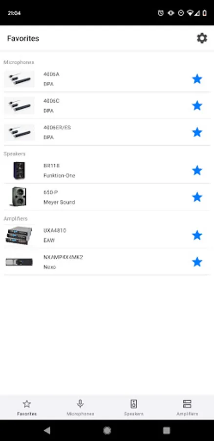 With an easily-accessible favorites list, the information you need most often is always ready for you when you need it. With support for dark-mode, you can keep using Soundspecs when the venue goes dark.