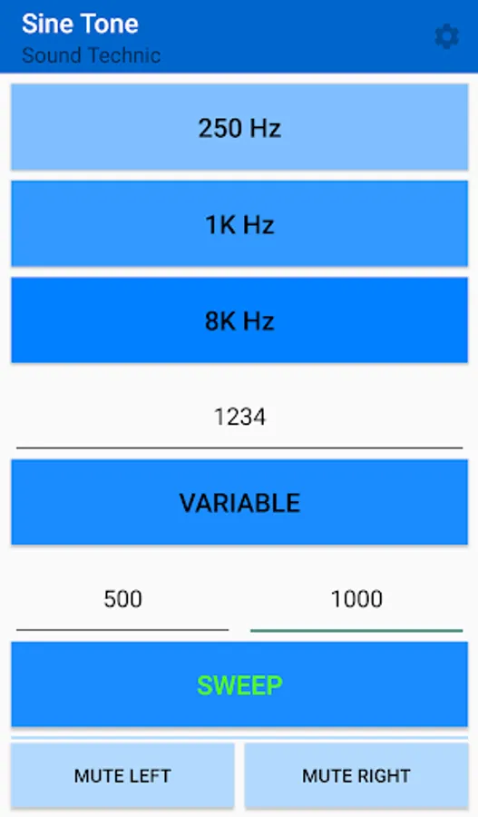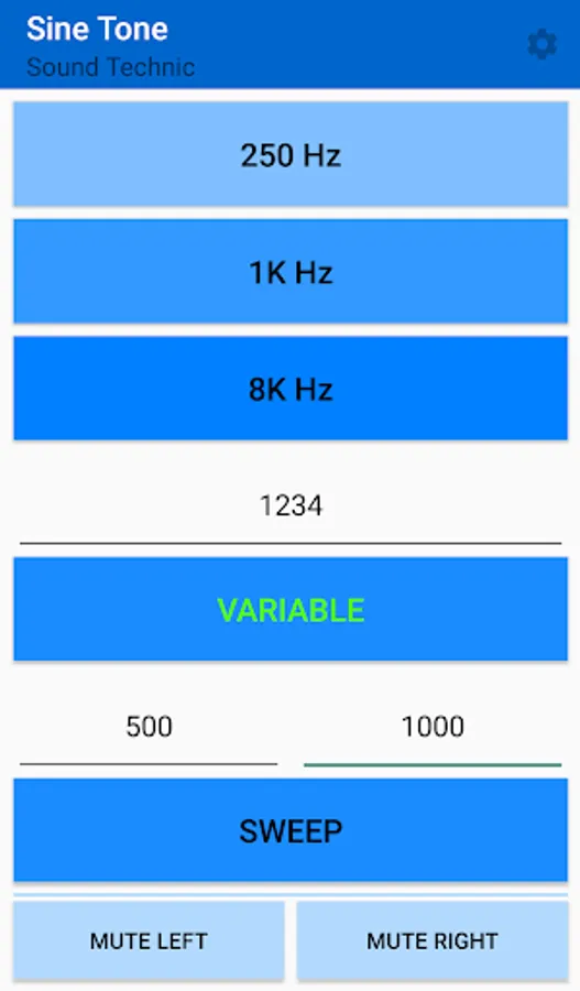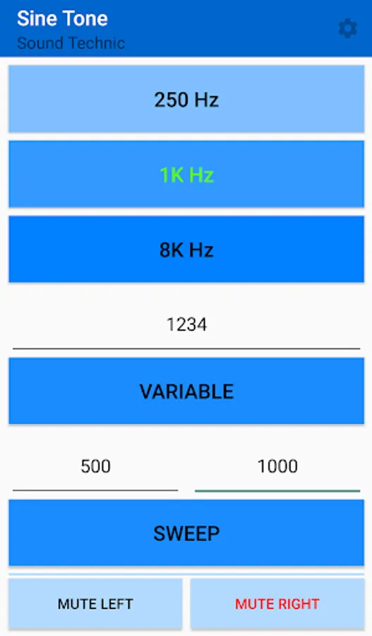 Fixed frequencies: 250Hz, 1KHz, 8KHz.