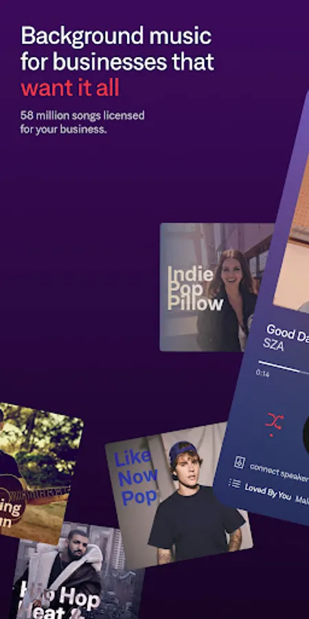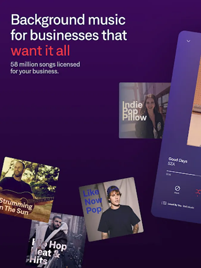 The only music streaming service for businesses where you can select exactly what to play, helping businesses find their sound since 2013. Get the playlists you want, stations and endless streams of music that get curated, revised and refreshed each week. Save time finding music, save money keeping it all legal!