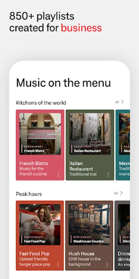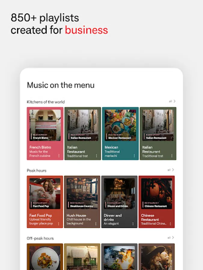• 850+ playlists designed for business