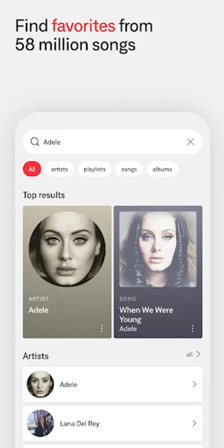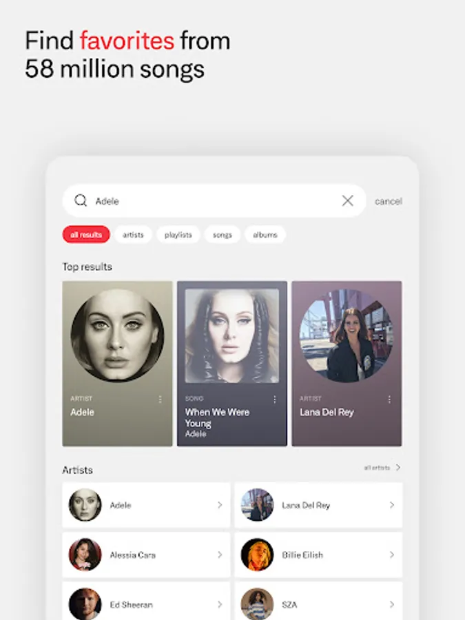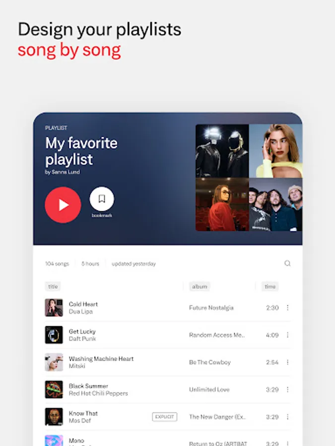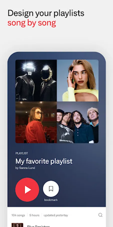 - Personalized recommendations. Artist and song searches include suggested playlists and similar music, ready to save and edit however you want