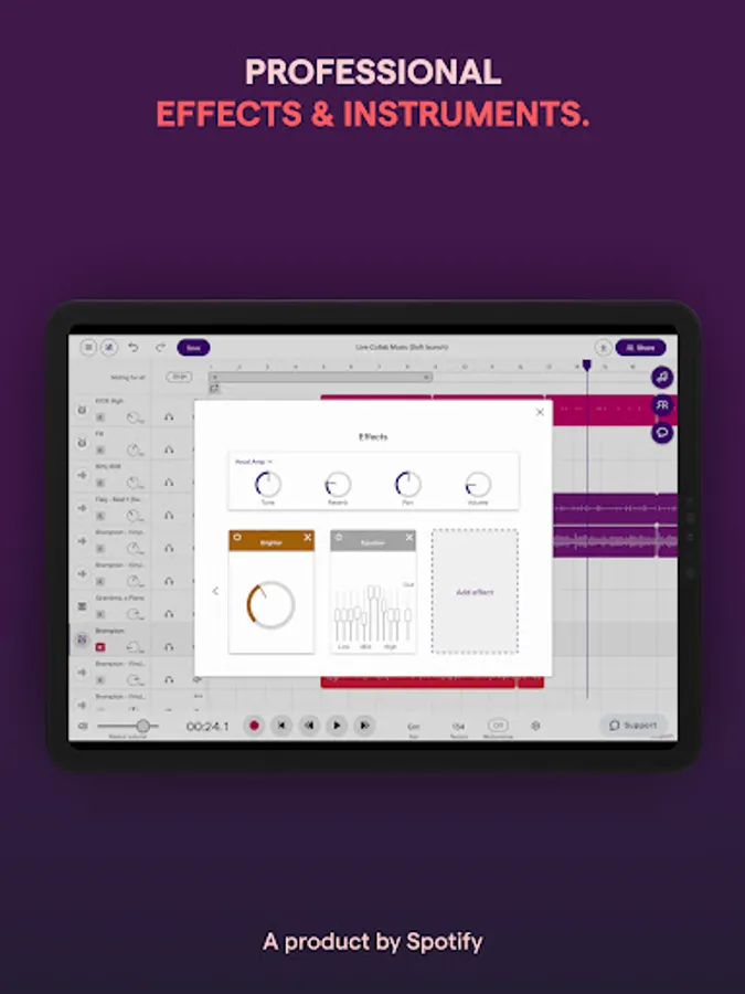 In this music and podcast studio app, you can record, edit, and collaborate on projects using built-in instruments and effects. Includes cloud storage, real-time collaboration, and access across multiple devices.