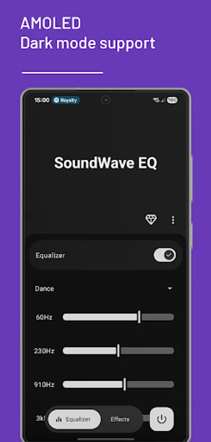 ✦ Allows you to customize effects like bass, treble, virtualizer, and reverb.