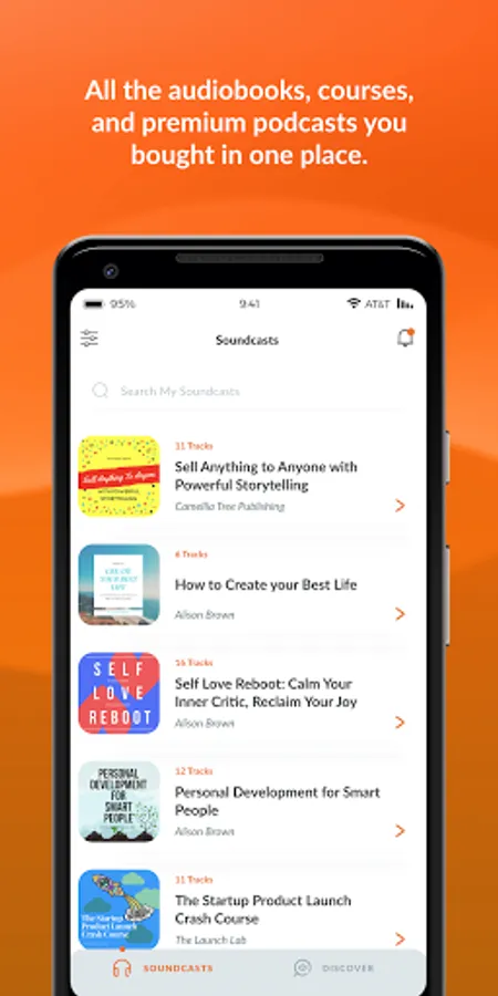 * Listen to all the audiobooks, audio courses, albums, and podcasts you purchased from Soundwise-powered publishers.