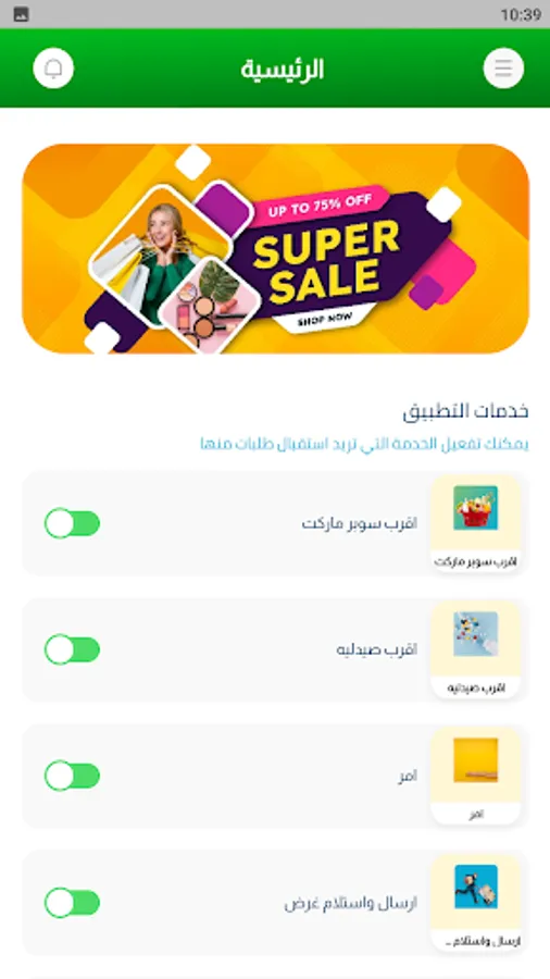 A mobile application to provide order delivery service in an easy and fast way, where the customer can register with the application and browse the various store categories, select his requests, then send the request and then follow up on the request, where the delivery representatives in the system receive the request and one representative approves the request to start the journey of delivering the order from the shop or store To the customer's site, the customer pays the value of the order in addition to the value of the delivery amount. The value of the commission is calculated on the delegates on the delivery amount, and it is paid to manage the application.