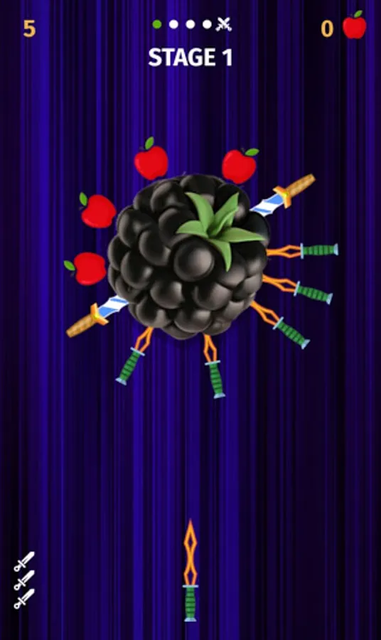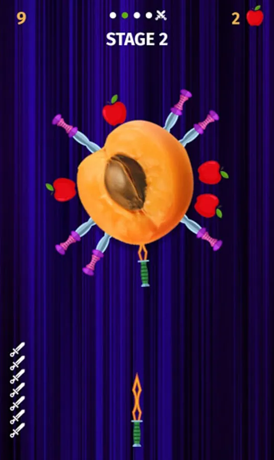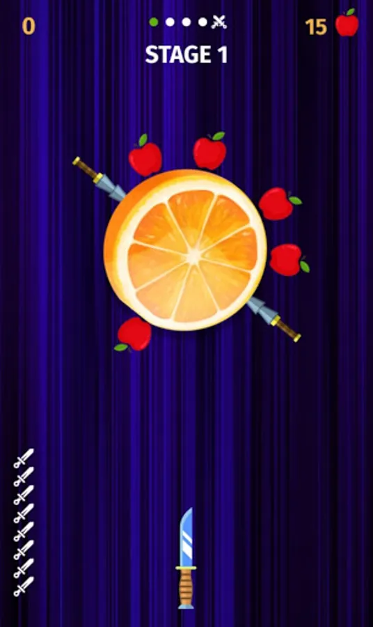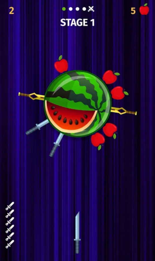 Throw Knife at Fruit Target. Cut the apple and open new knives. Every five stages a monster comes, be careful to not hit the knife.