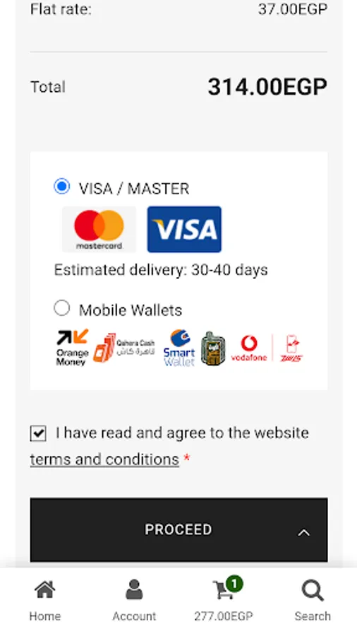 تستغرق عملية الأستيراد من الخارج من 30 الي 40 يوم وبحد أقصي 60 يوم إن لم يتم تسليم المنتج في خلال الحد الأقصي يتم أسترداد المبلغ بالكامل للعميل وهنا نتميز بأن الشحن مجاني أي أن العميل لا يتحمل أي مبلغ في الأستيراد ولا الوزن ولكن العميل يتحمل الشحن الداخلي داخل جمهورية مصر العربية وهي تتراوح بين 40 الي 60 جنيه مصري علي حسب المحافظ