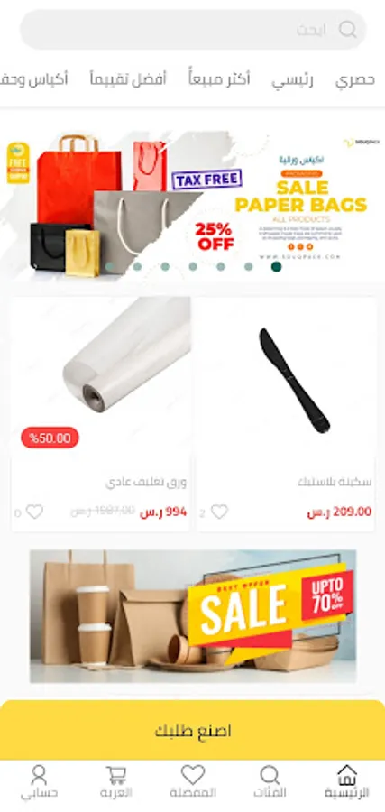 سوق باك - تسوق من أكبر تشكيلة منتجات تعبئة وتغليف بالسعودية ، مصنع سوق باك يلبى احتياجات أعمالك من أكياس و أكواب , علب بلاستيك , مستلزمات مائدة بلاستيكية , مناديل مطبوعة وأوراق التغليف والمزيد. تسوق الآن