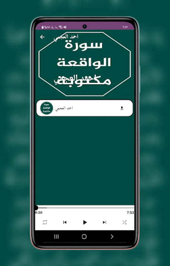 The application that is in your hands contains Surat Al-Waqi'ah audio and image.