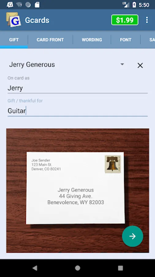 Send a Real MAILED Greeting Card for only $1.99 - Shipping Included!