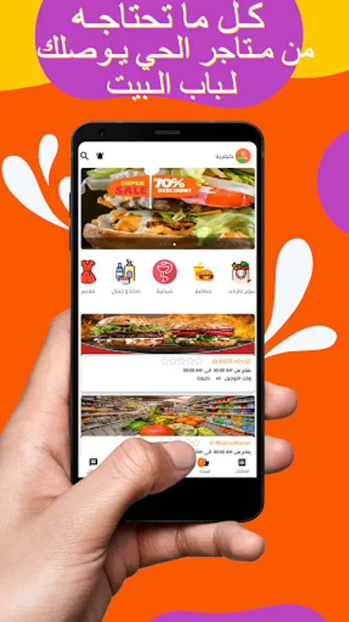 Save time: All your daily needs will reach the door of your house or follow all the products and services in your city on your mobile screen without spoiling or abiding by the store's appointments
