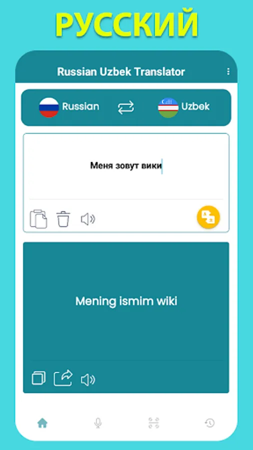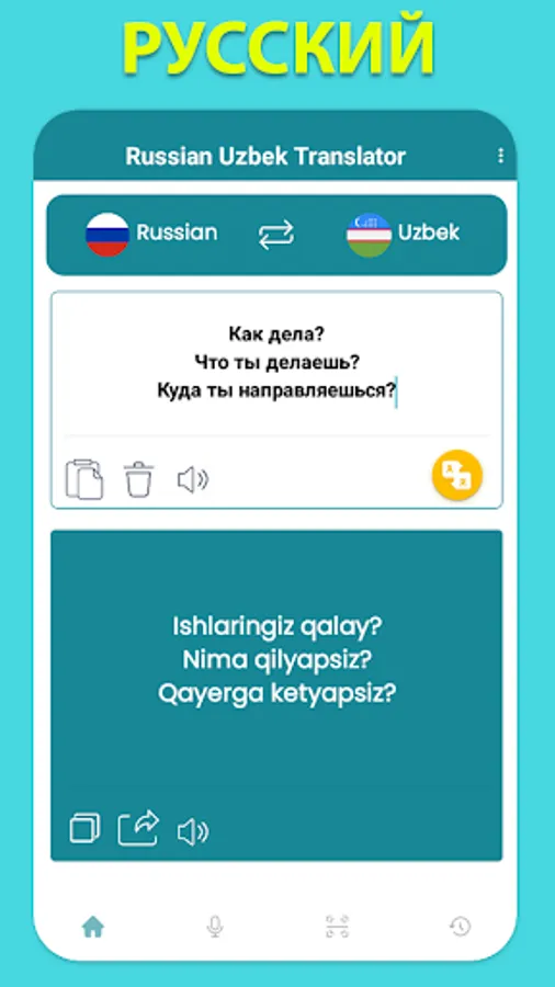 * This translation app is absolutely free. You can translate words and sentences in both ways, from Russian to Uzbek and from Uzbek to Russian. This useful translation application offers fast and accurate translations.