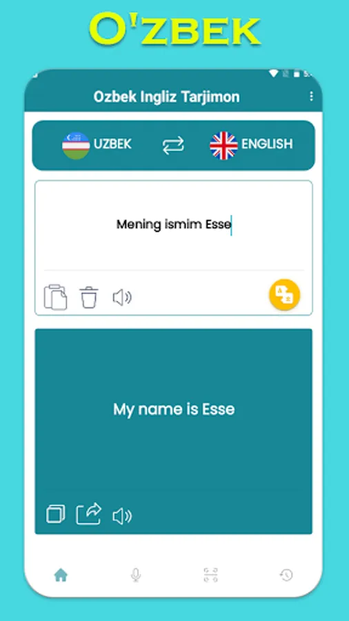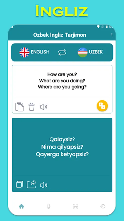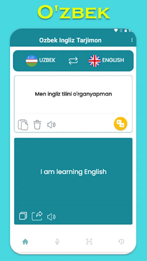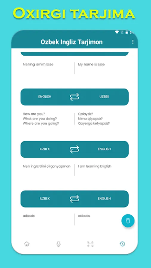 - Bu tarjima ilovasi mutlaqo bepul. Siz so'z va jumlalarni ingliz tilidan o'zbek tiliga va o'zbek tilidan ingliz tiliga har ikki usulda tarjima qilishingiz mumkin. Bu foydali tarjima ilovasi tez va aniq tarjimalarni taklif qiladi.