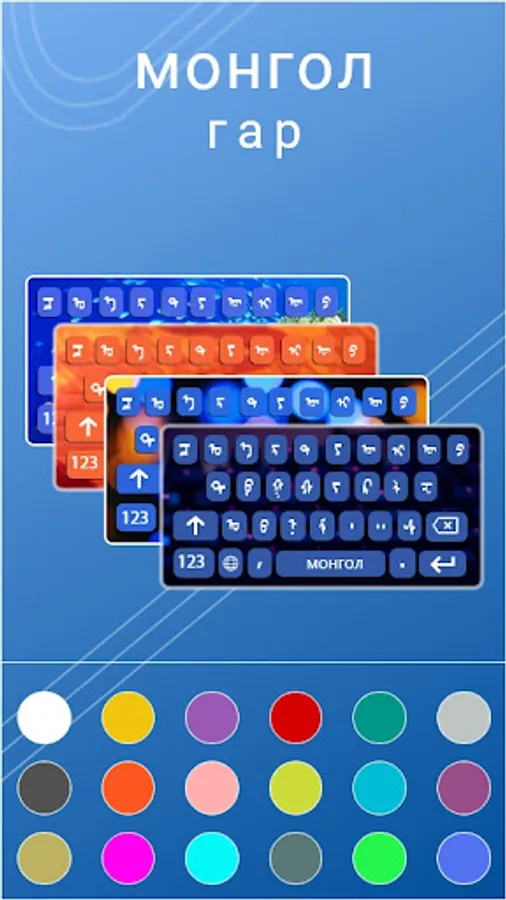 English to Mongolian keyboard typing with theme change. Mongolian keyboard offline lovers have a best solution of sharing Mongolian content at social media with all Mongolian speakers. Keyboard for Mongolian language is finest tool to bring you close to Mongolian English readers and your problem of having chat with non-English