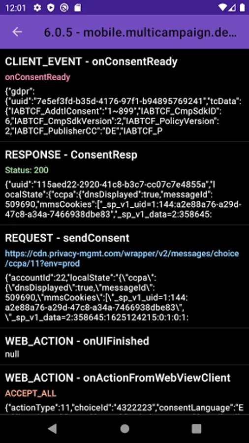 The MetaApp is a complete inspection tool which gives you a chance to inspect the behaviour of the CMP SDK that currently is in production. Following the available features:
