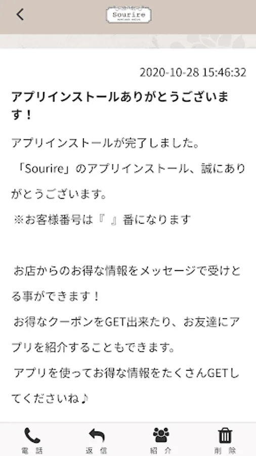 With this app, you can receive the latest information on Sourire and use useful functions.
