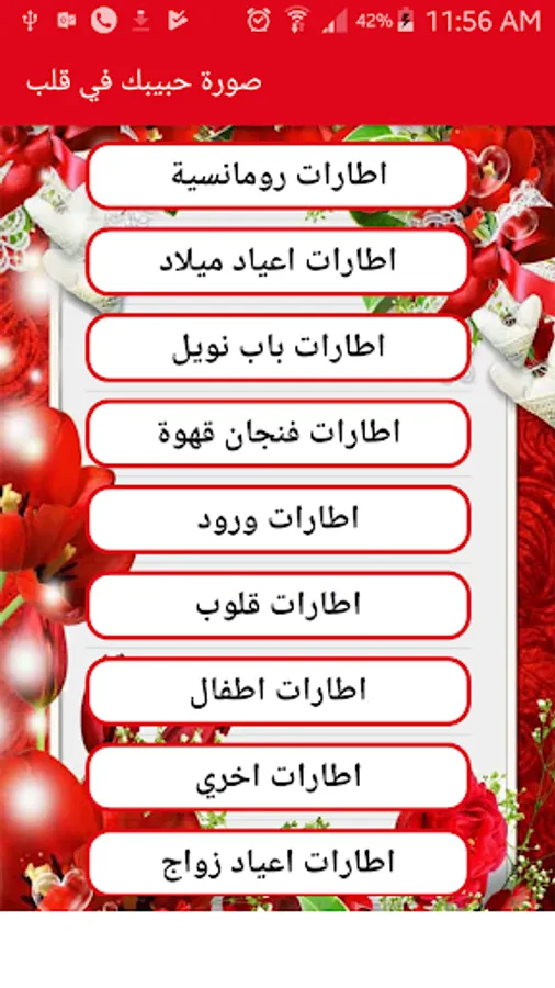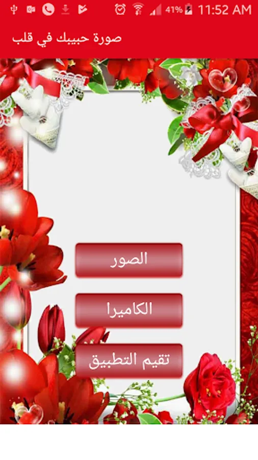من خلال هذا التطبيق يمكنك وضع صورتك وصورة حبيبك مع بعض كما يحتوي التطبيق علي مجموعة جميلة من الاطارات الرومانسية واطارات اعياد الميلاد واطارات اعياد الزواج واطارات ورود من خلالها يمكن اضافة صورتك من الاستديو او من الكاميرا ويمكنك وضع صورتك وصورة حبيبك في قلب بدون نت وايضا صورتك وصورة حبيبك في قلب عيد الحب