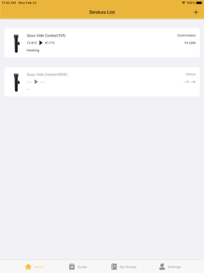 You will become a professional chef with the simple Cuisine APP and sous vide devices. With more than one device? No problem! The Cuisine APP supports controlling multiple devices at the same time. Just prepare for the food and ingredients shown in the recipes, connect all the devices you are going to use, go out for any activities. When you come back, the food is ready for serving.