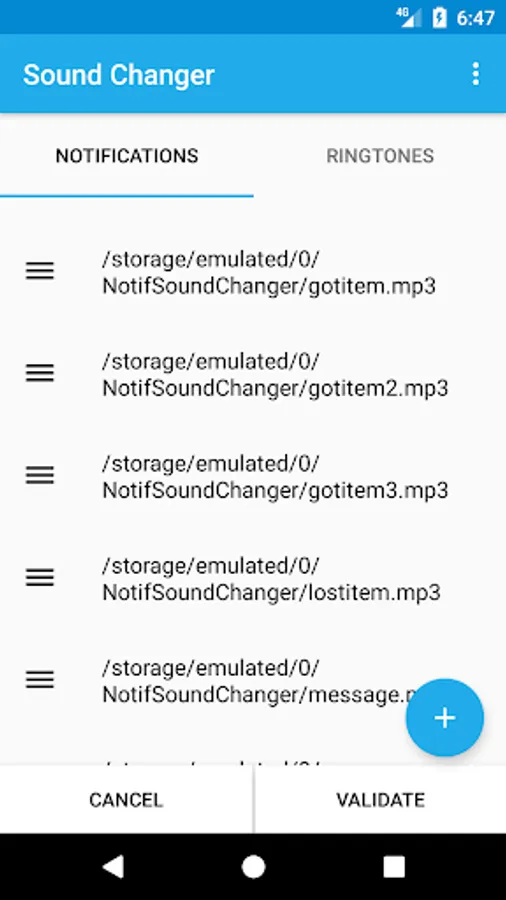 With Sound Changer, you're able to have a list of sounds that will be used as notification sound. And another list for your ringtones. The sound will change each minute.