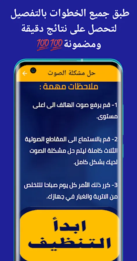 Solving the sound problem in the phone is one of the best tools to enhance and increase the sound, it is the best way to increase the volume of the sound to the maximum by cleaning it from dust and dirt. It enables you to increase the sound of the music, the sound of the system, as well as the sound of the speakers, the external amplifier, the sound of games, and the disposal of dust and water.