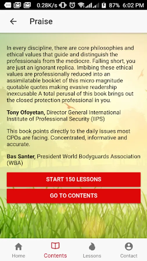 However, I will add a warning to CPOs here. After reading this book, you will also find out that some VIPs don’t like CPOs around them. They believe nothing can happen to them. However, a true professional will have to earn the confidence of the VIP to fully accept your duties and at best be their confidant. Nnamdi Okeke has outlined all these in the book which I will recommend as a companion for serious minded CPO professionals.
