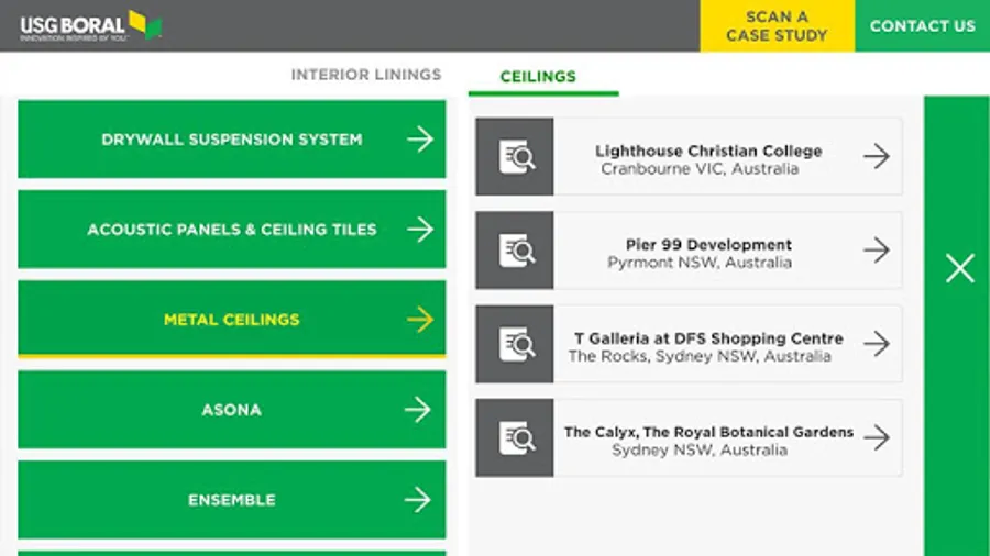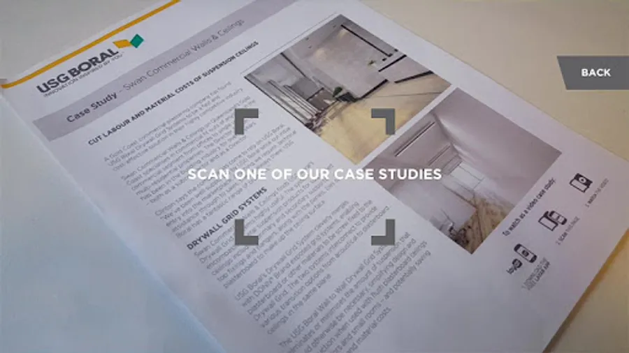 Using the print AR technology or ‘projects by product’ menu users can select a USG Boral wall or ceiling product and view its application on actual building projects in Australia & NZ through a variety of digital assets, including video testimonials, virtual tours and images.