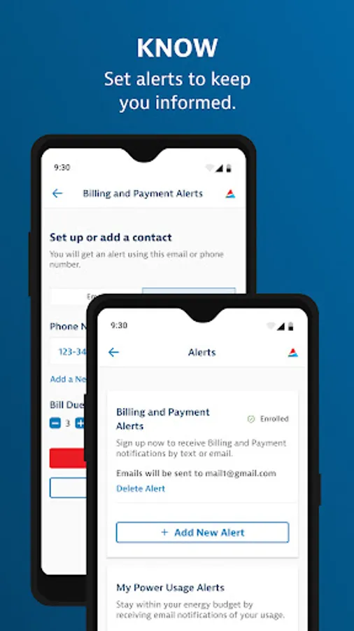 • Receive alerts when your bill is due, when there is an outage in your area, or when your usage is high