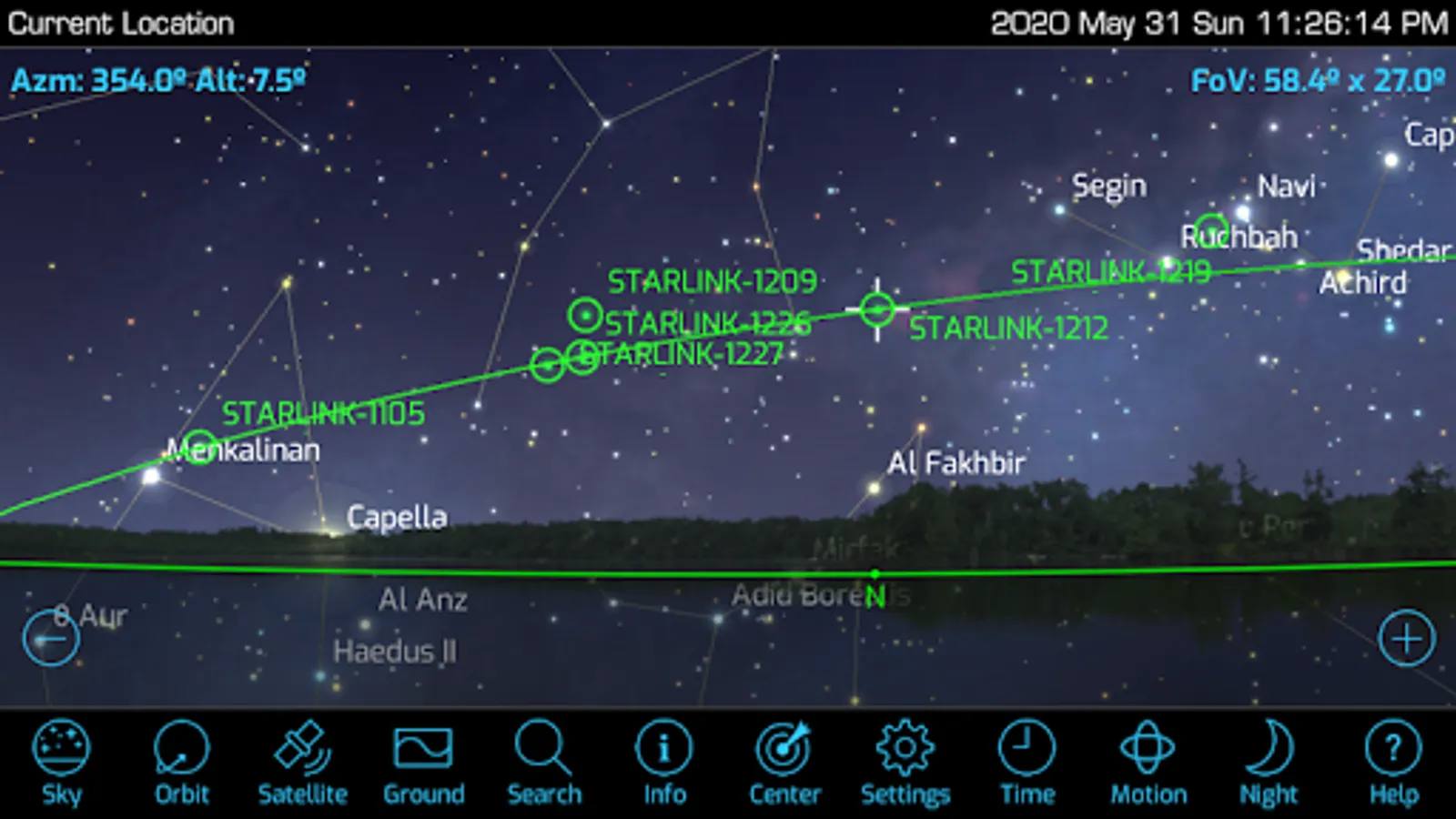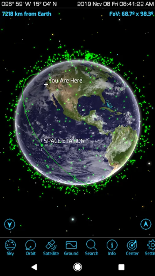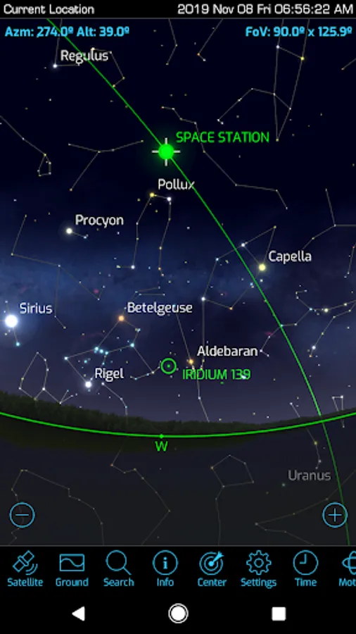 3) An "augmented reality" mode that helps you find satellites in the sky using your device's GPS and motion sensors. Works with Orbit and Satellite views too!