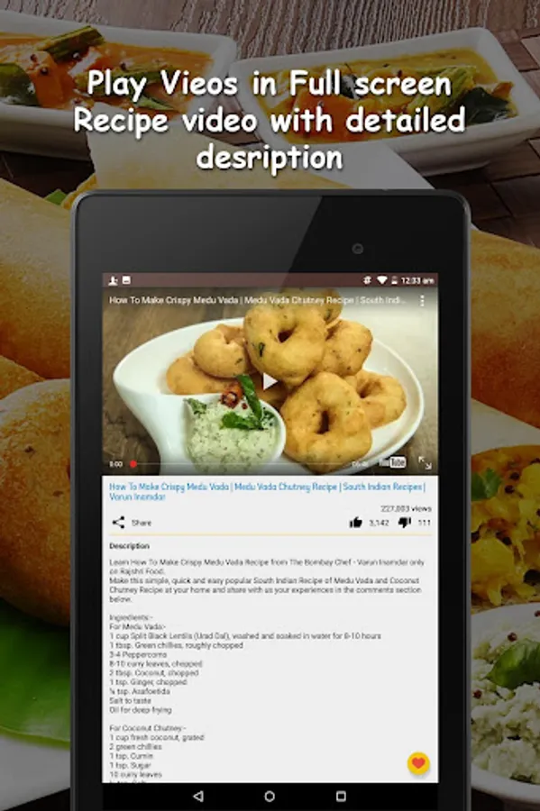 You can find varieties of South Indian Recipes and regarding videos on this app. So here South Indian Recipes Videos App provides best solutions as per your demand.