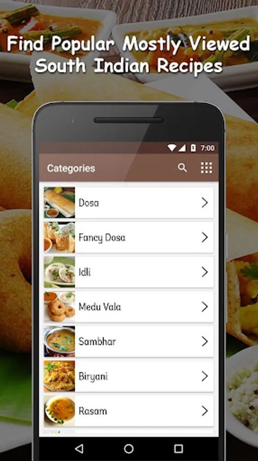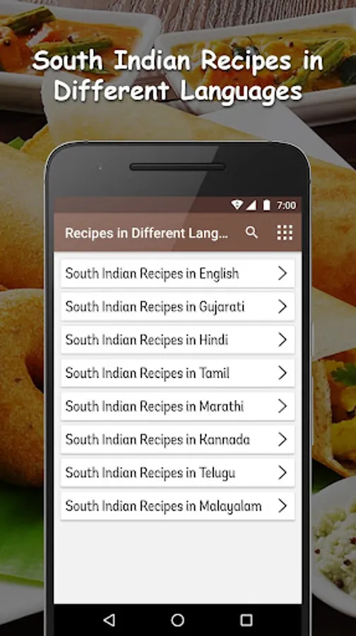 South Indian Recipes - Veg & Non-Veg food from South Indian Cuisine are very popular food in South India. App contains a collection of popular South Indian vegetarian recipes and curries.