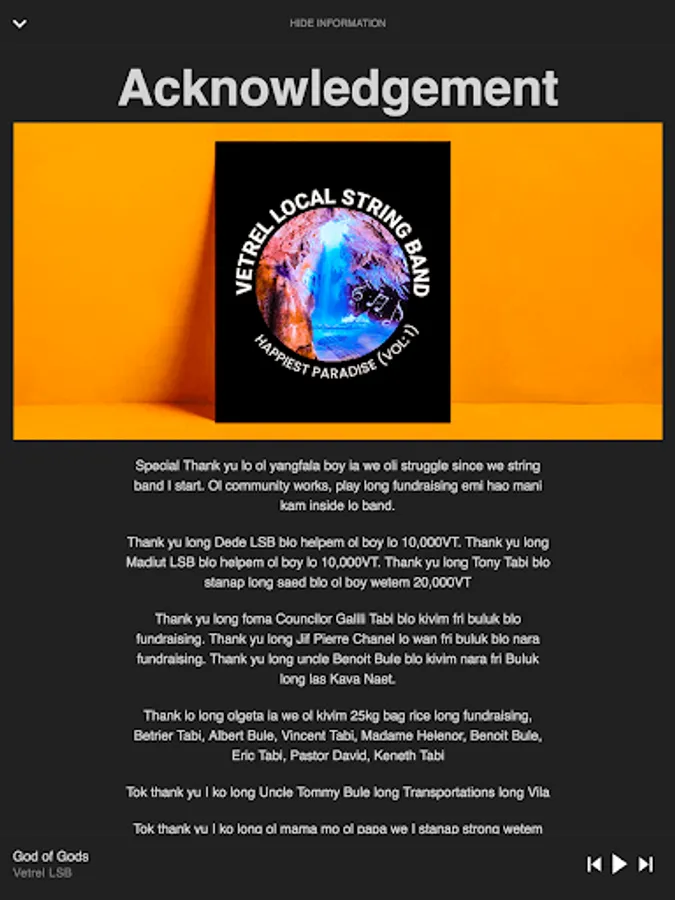 Vetrel Local String Band hemi lonjem fes eva album blo hem, Happiest Paradise (Volume 1).