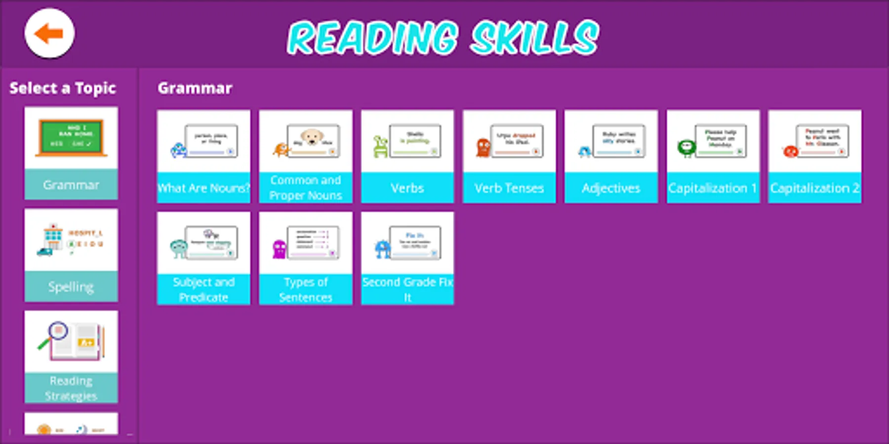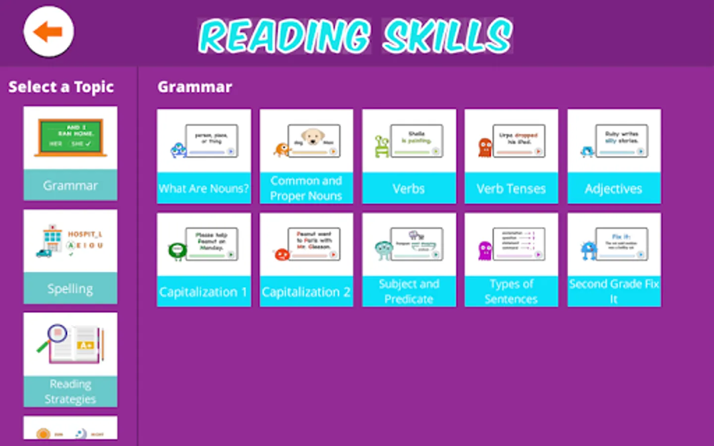 *More than 400 tutorial videos providing instruction on math topics like place values, fractions, algebra, and integers and reading topics like grammar, reading strategies, spelling, and reading comprehension.