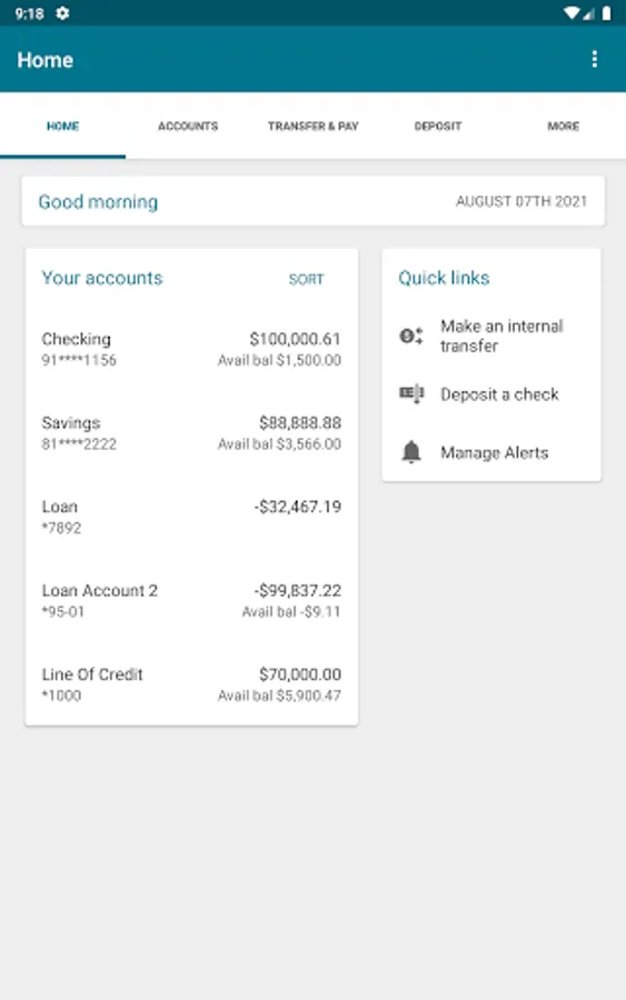 **Online customers must first setup transfer and bill pay accounts prior to using these features.