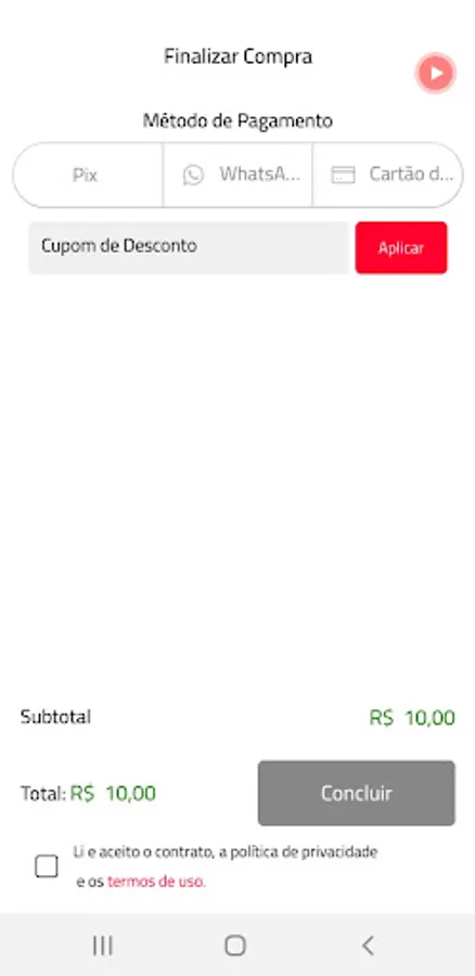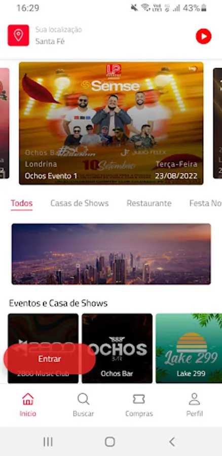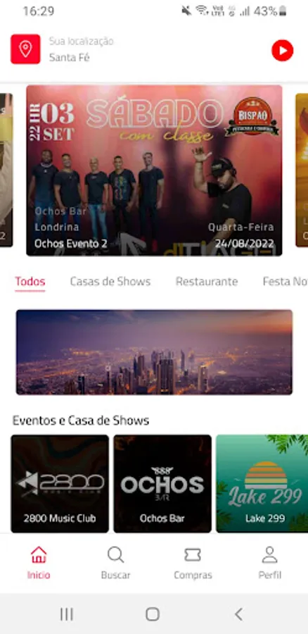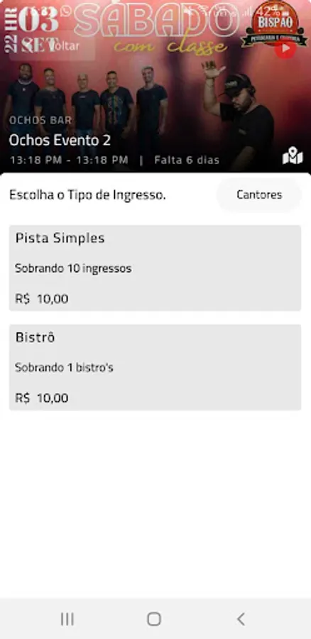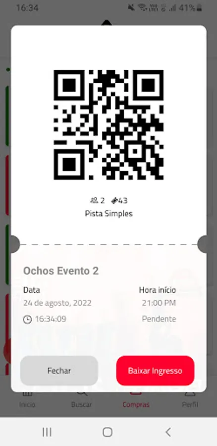 The events are divided by region and categories, such as parties, clubs, festivals and many others. When choosing your event, your tickets will be stored in purchases to make the payment, and after paying, your QR code will be generated to enter the event.