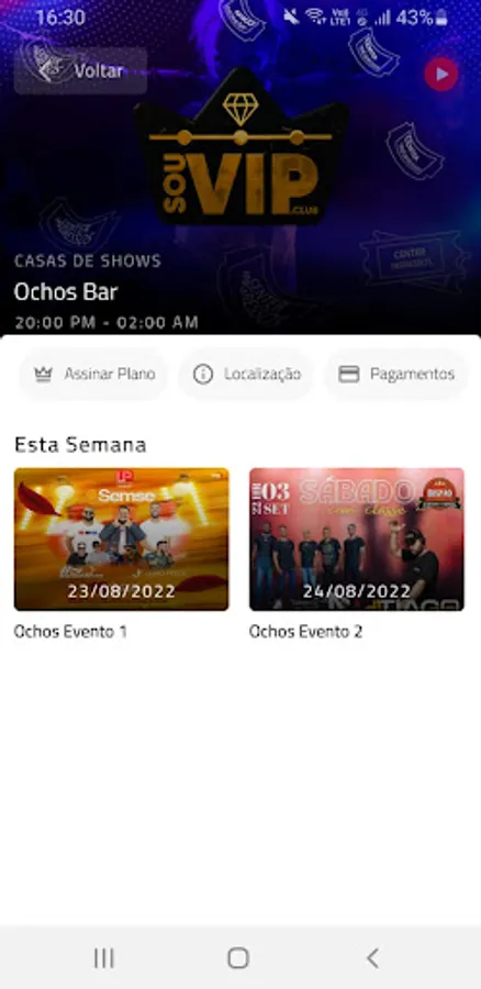 It's never been so easy to buy and store your ticket on your mobile. In the Sou VIP app you have access to events in your region, you can buy without leaving home, using only your cell phone, very easily and quickly.