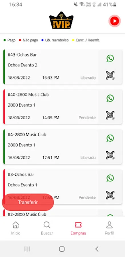 At Sou VIP it is possible to transfer your ticket to another person using the ID that is created by the site, individually for each user. You will only be able to transfer the ticket if it has already been paid, transferring the recipient will receive a notification and the ticket will be in the purchase tab, ready to be used.