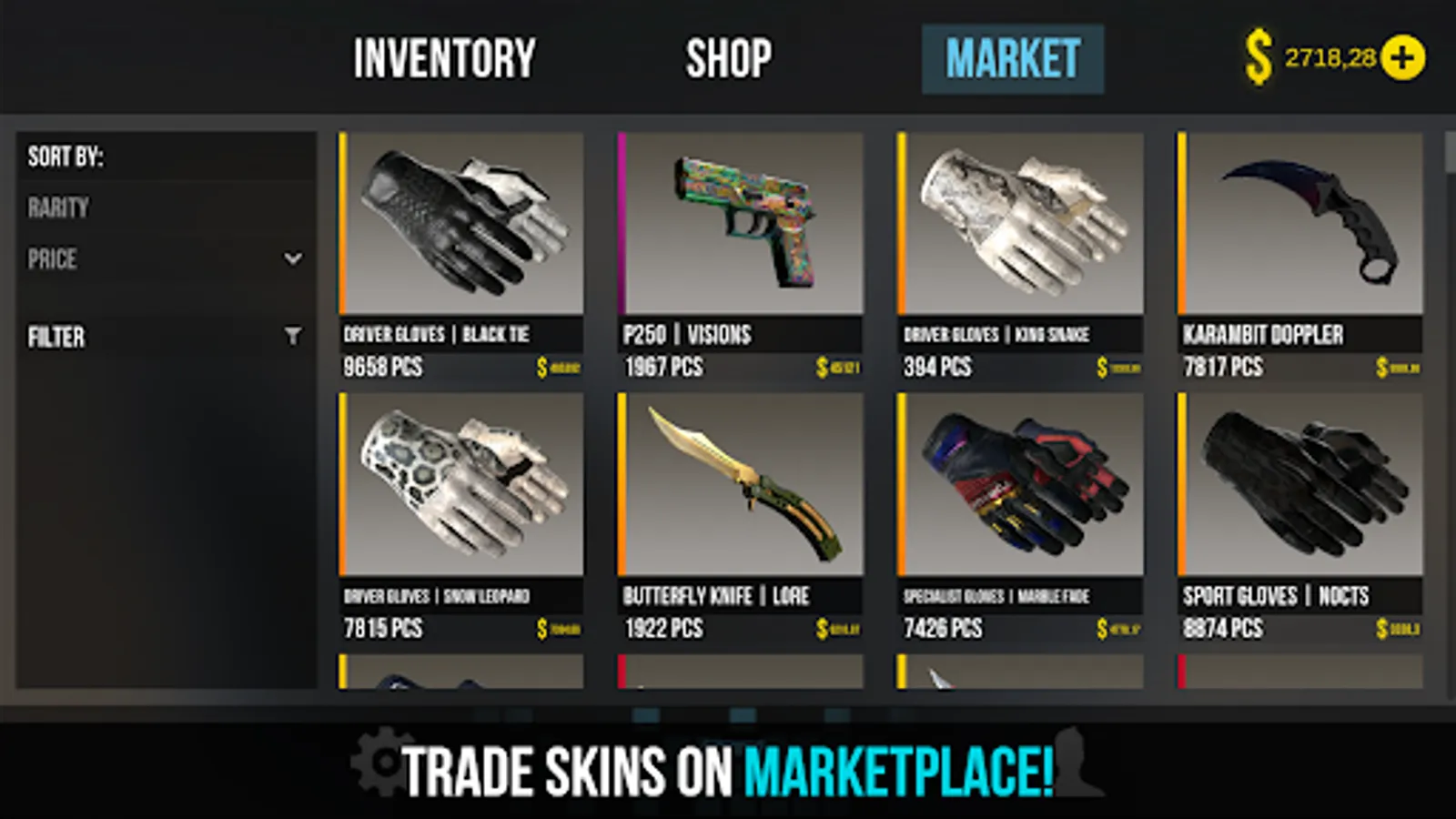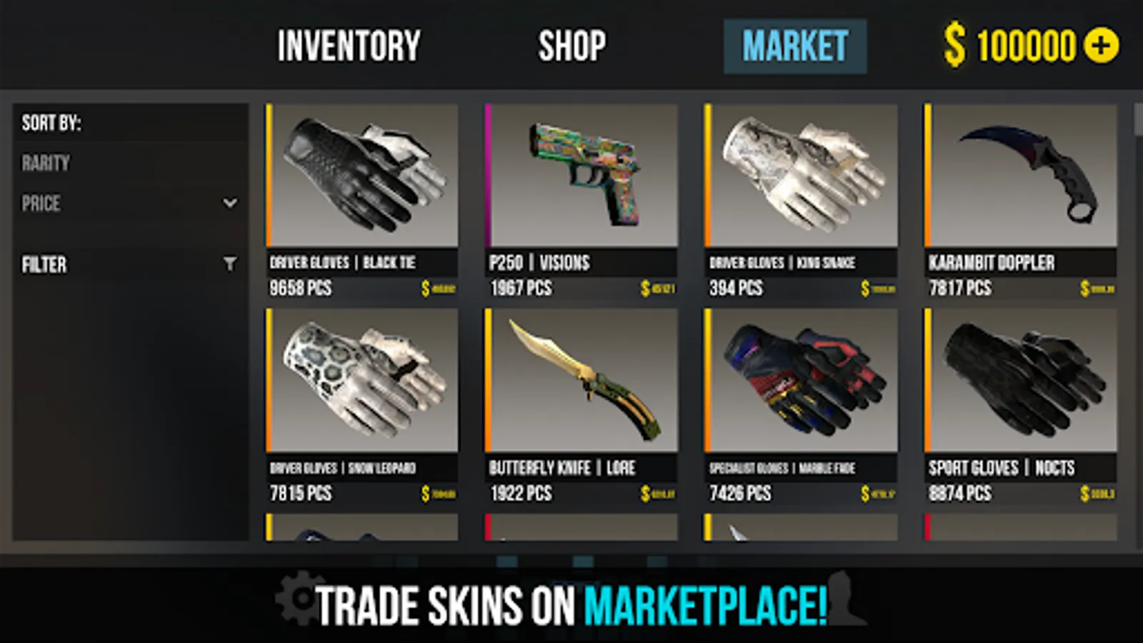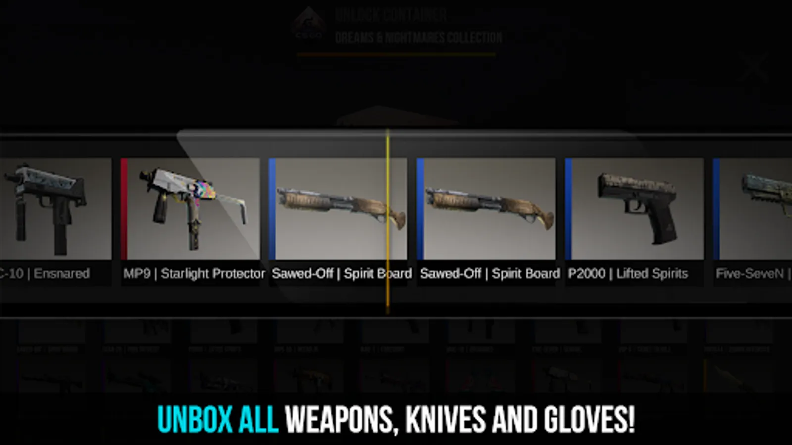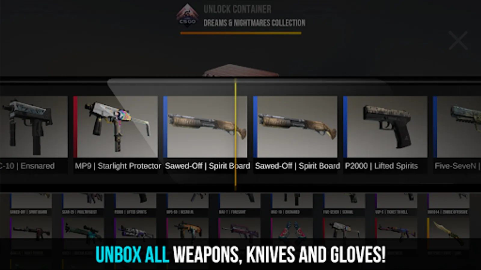 💎 massive collection of skins: Unlock an extensive array of csgo skins of different rarity from various cases, ranging from common and uncommon to rare and legendary. With hundreds of different skins to discover, you'll always find something new and exciting. Collect and admire your favorite skins, or trade them with friends to complete your dream loadout. Our simulator offers a vast selection, including knives, rifles, pistols, and more.