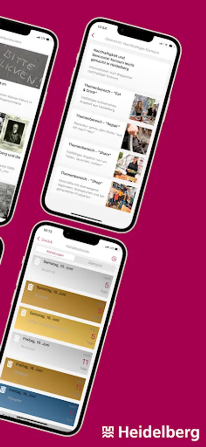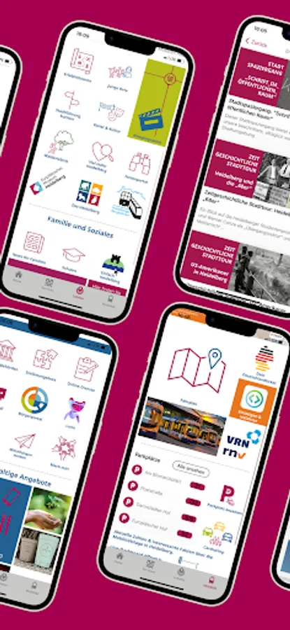The app offers numerous features such as news from Heidelberg, the municipal waste calendar, online services and forms, departure schedules, local events and events, and a multitude of other options: