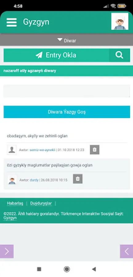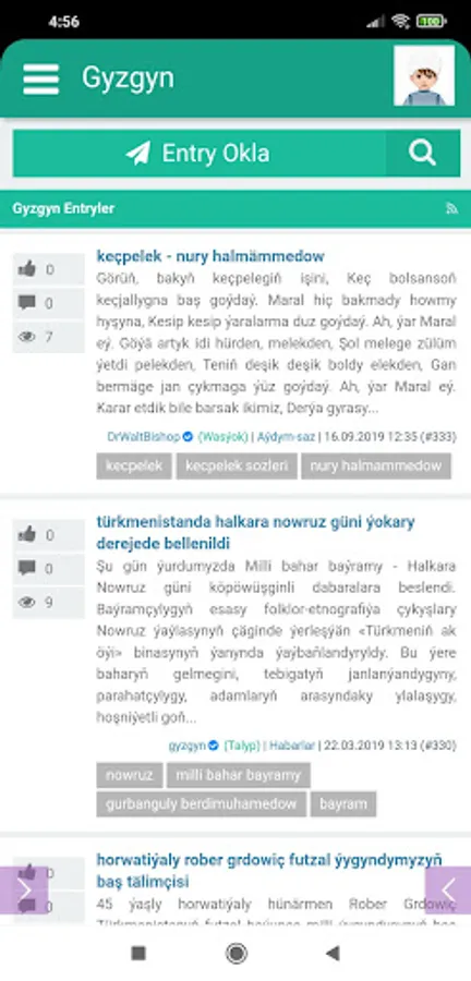 Gyzgyn Turkmen Interaktiw Sosiýal saýty picirs (entries) about a certain mowzuk, iň täzeje we gyzgyn habarlary, wakalary we ol wakalar about agzalaryň pikir we teswirs, gep-gürüäleri At this time, you will be able to express yourself to the entries that are read in the fresh entry okap ýa, perhaps the mouths who know, will go gyzykly wagt.