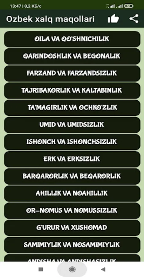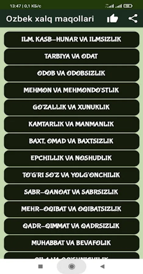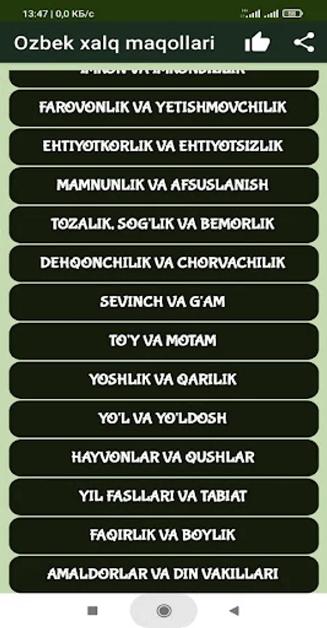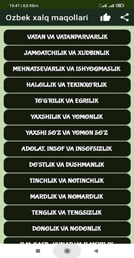 Bu ilovamzda har bir mavzuga alohida kerakli