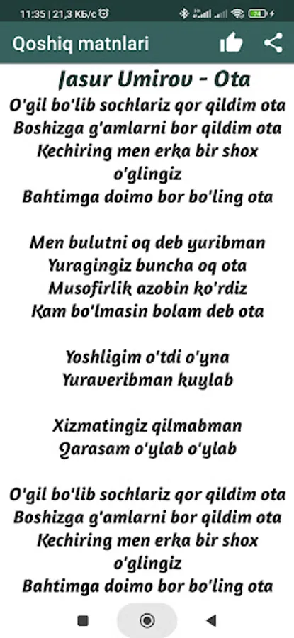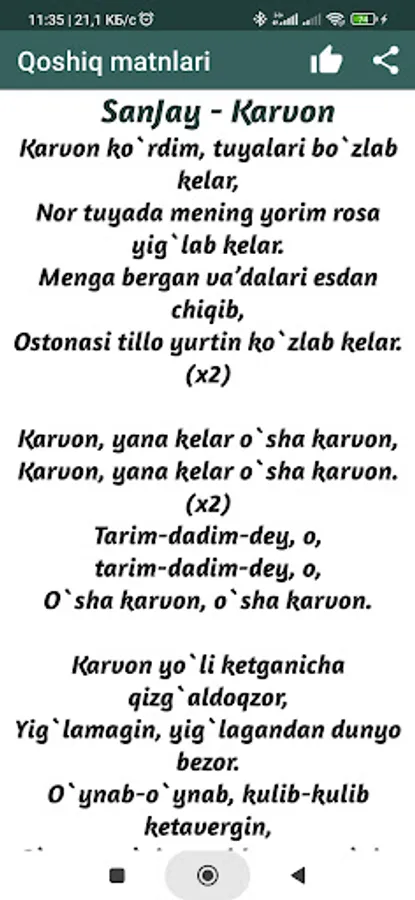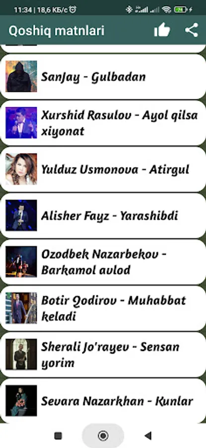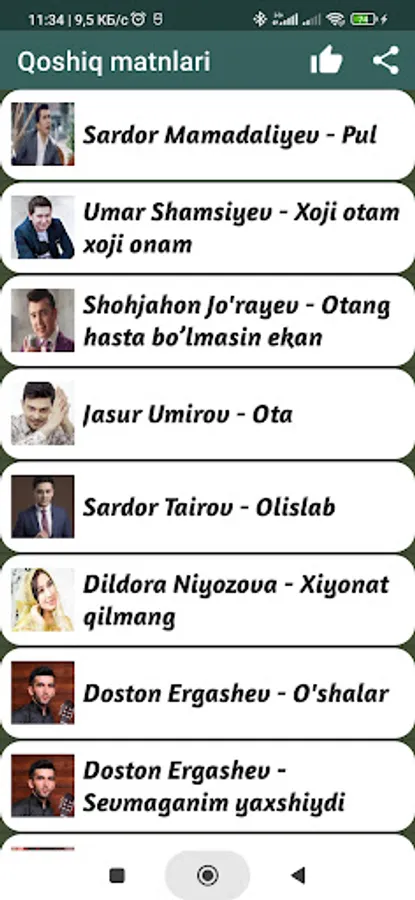 Bu ilovada mashhur xonandalarning mashhur ashulalarining matnlari mavjud
