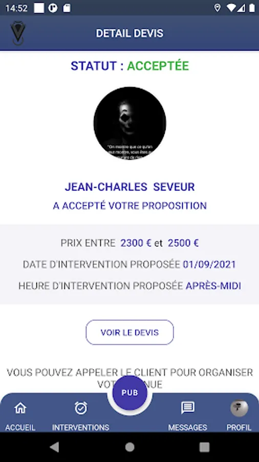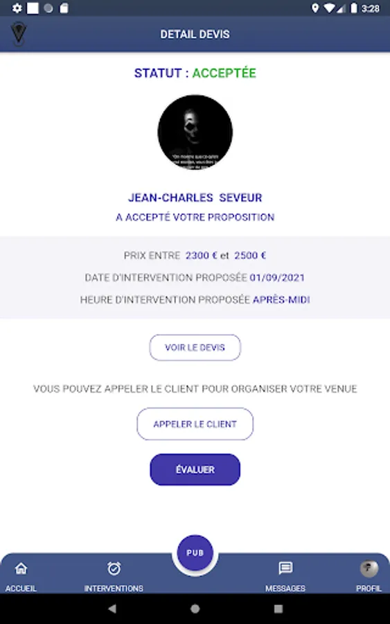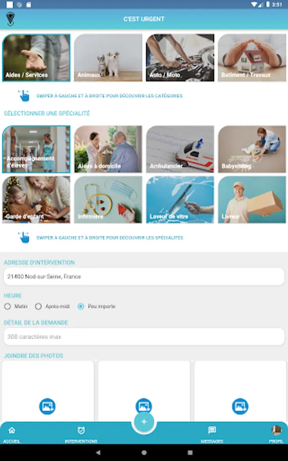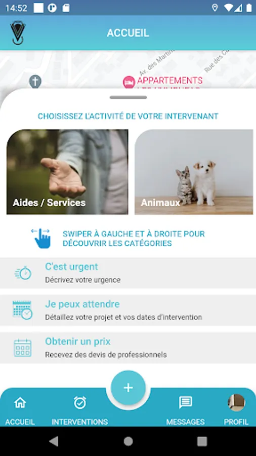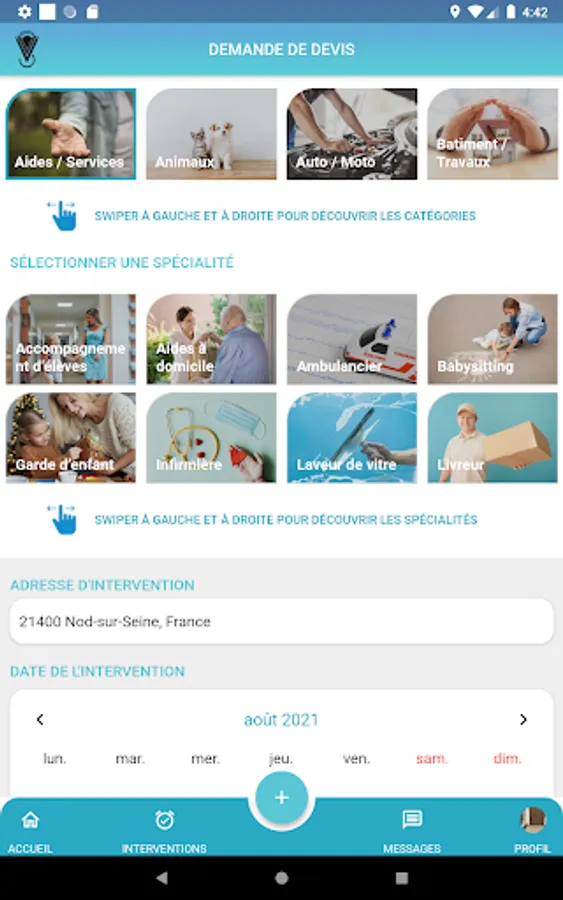 Discover the n ° 1 application for professionals and individuals looking for services. 1: For individuals you can search and find any geolocation service, request a scheduled or immediate intervention or a quote. 2: for professionals the application allows you to present your services, according to your trips and geographic locations to have customer requests interested in your services in real time and to plan them, you can also send directly via the application your quotes, respond to your availability of intervention and thus complete your agenda. you can, depending on the subscription chosen, manage several employees 5 or 10 maximum