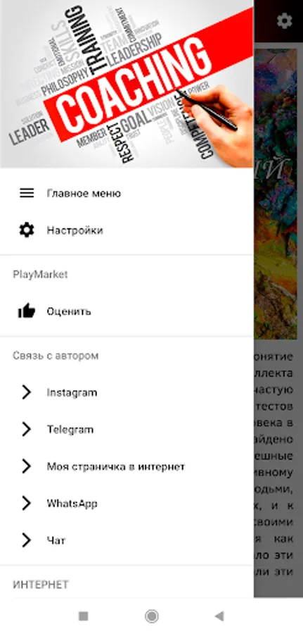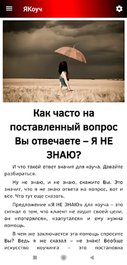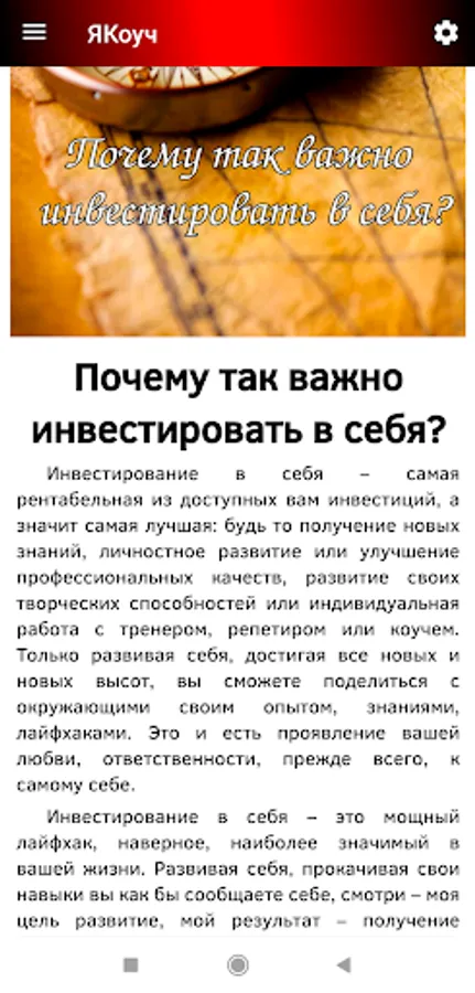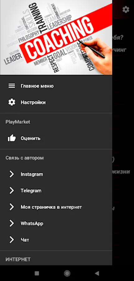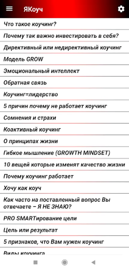 The application contains general information about the world of coaching, the main directions of its development, general trends of our time regarding self-knowledge, motivation. After studying the information, you will get a general idea of what coaching is and why its popularity is increasing every day.