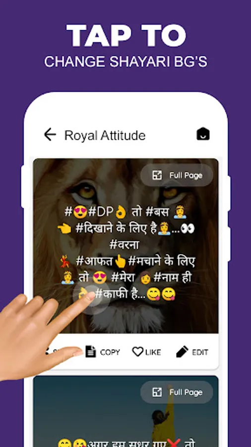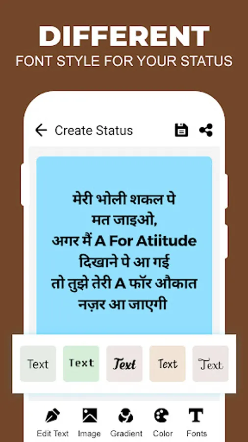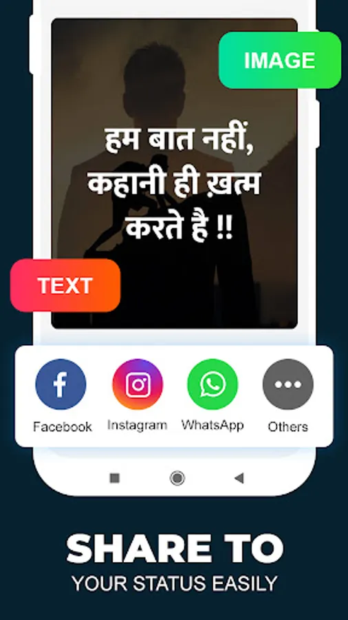 This app Brings you the best Attitude Status Collection of 2022 in Hindi. Show your Attitude & Personality with these Attitude Status in Hindi, Boy Attitude Status, Killer Attitude Status, Motivational quotes, love Attitude Status, Dosti Status, Hindi Funny Status and More from our Collection of Best Status in Hindi.