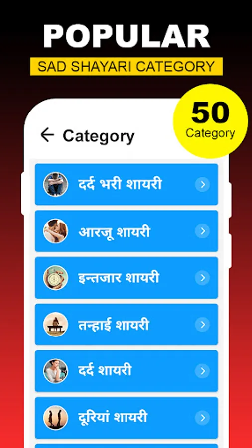 Looking of Best "Sad Shayari" or "दर्द भरी शायरी" All in One App ? Then You are in Right Place. Just Download Sad Shayari App or दर्द भरी शायरी in Hindi App. This App is Completely Free To Use without Any Internet Connection.