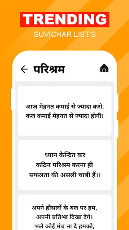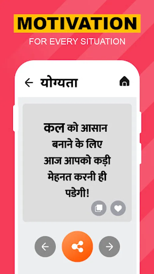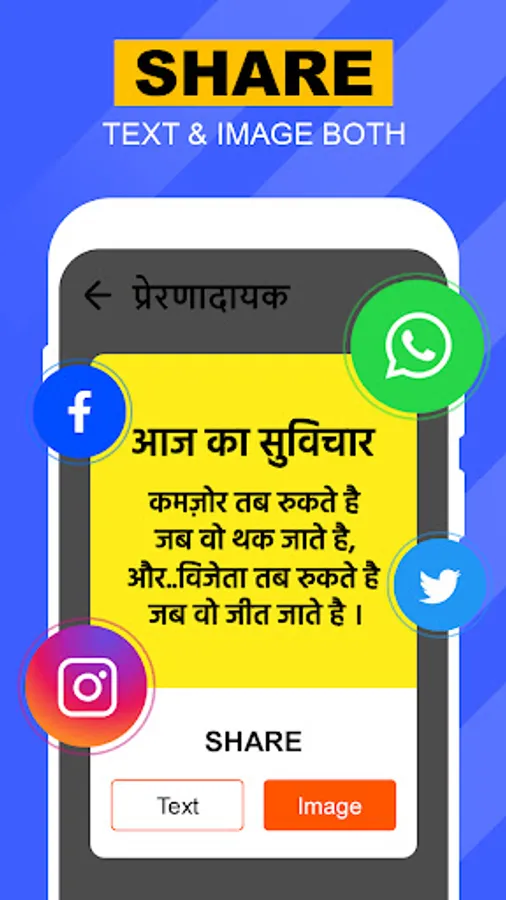 Hindi Suvichar Collection & Motivational Quotes will help you, to change your way of thinking with Beautiful Quotes and Beautiful Phrase about Life, Happiness, and Quote of the Day. When you Start to feel Down or Depressed, a Simple Solution for this is to Read inspirational or Motivating Quotes. Get Daily Quote Notifications will keep you motivated every day! Share to WhatsApp, Facebook, Twitter and many others, New Quotes added Every Day.