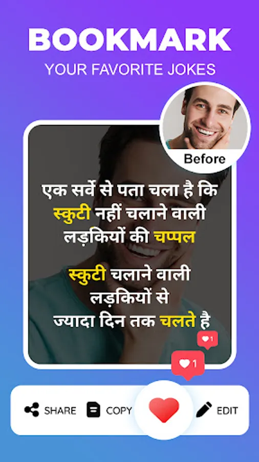 ✦ Bookmark Your Hindi Jokes into the Favorite List.