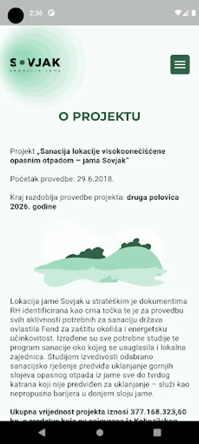 The "Sovjak" mobile application shows the measured concentrations of pollutants in the air and sends notifications to users when they exceed the permitted limit. It was developed as part of the project "Remediation of a location highly polluted by hazardous waste – Sovjak pit" and it is possible to find all the latest news, as well as basic information about the project.